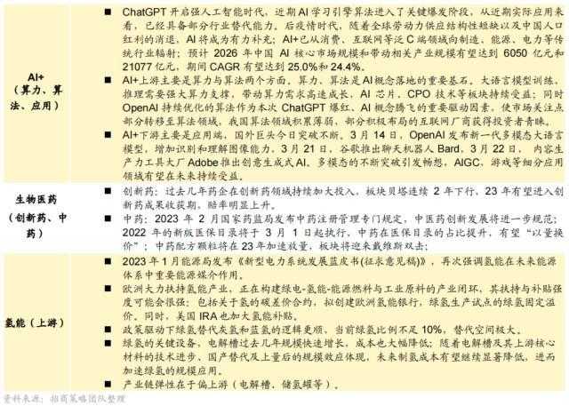 【短期产业趋势关注及建议】从短期角度, 4月需要重点关注五大具备边际改善的赛道:数字经济(数据要素)、半导体(材料、设备、EDA)、AI+(算力、算法、应用)、生物医药(创新药、中药)、氢能(上游) 。