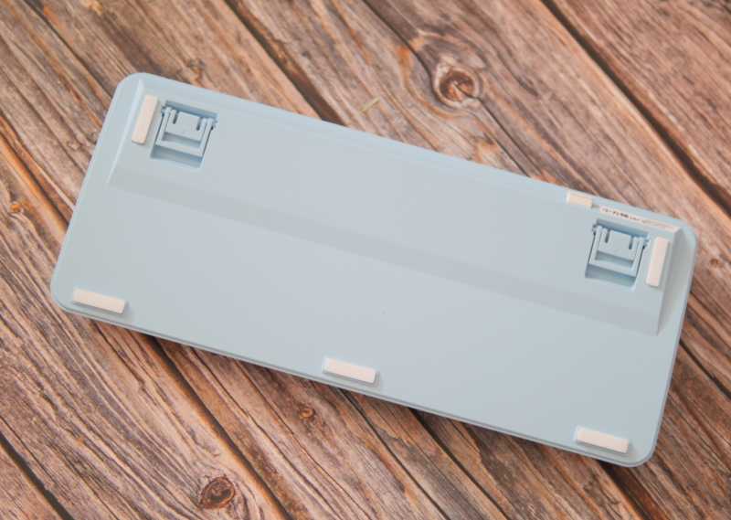 背面中规中矩,上半部分一个小小的凸起可以给内部的电池留出空间,同时两段式的脚撑也是现在键盘的常规配置了。