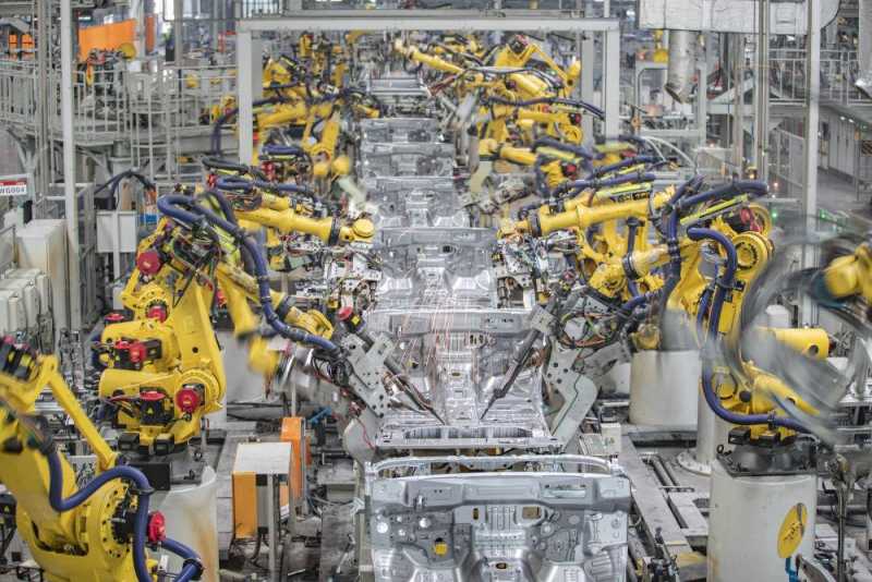 3月1日,在长城汽车重庆永川生产基地焊装车间,智能化焊接机器人在进行焊接作业。新华社记者 黄伟 摄