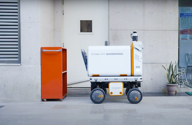 Ottobot Yeti 据说是 「市场上第一个完全自主的无人值守的送货机器人」。送货机器人可以将你的包裹放到台阶上或者转移到储物柜里。客户甚至可以退货,利用机器人将不需要的产品送回原卖家。