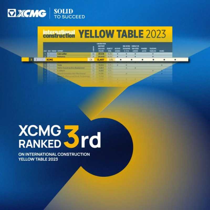 6月1日,全球工程机械行业知名资讯集团KHL旗下《International Construction》杂志权威发布Yellow Table榜单,中国制造商徐工XCMG蝉联第三位。徐工也成为唯一连续三年跻身全球前三甲的中国工程机械制造商。