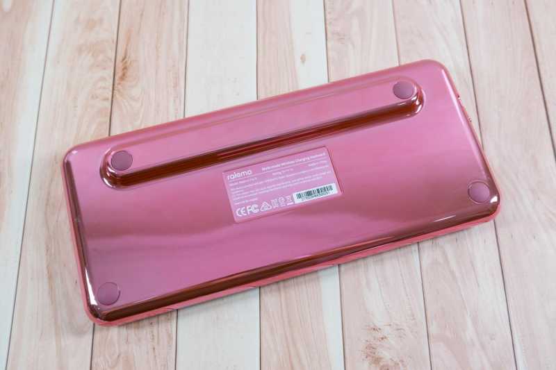 雷柏ralemo Pre 5 多模无线机械键盘的整个外圈和底部都是玫瑰色,电镀工艺处理,所以非常的光洁亮丽,镜面效果出色。白色的面板加上玫瑰色电镀底盘,这就是心花怒放的含义。键盘底部上方有一段加高,让键盘整体上仰,更符合人体工学。