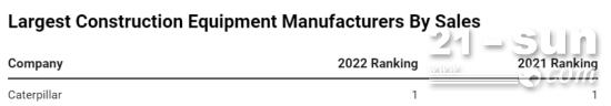 全球工程机械制造商50强榜单出炉,卡特彼勒蝉联榜首!