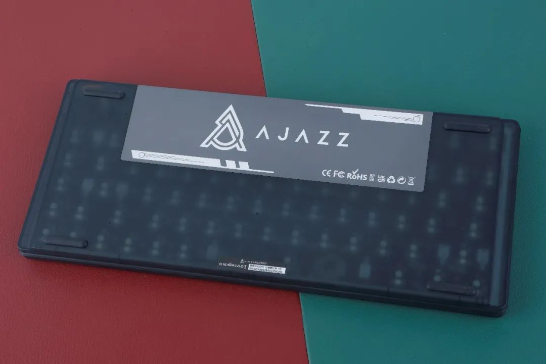 ▲黑爵AK832Pro三模机械键盘的底部设计简单、干净,并且半透明的外壳能够让我们观察到其内部设计。