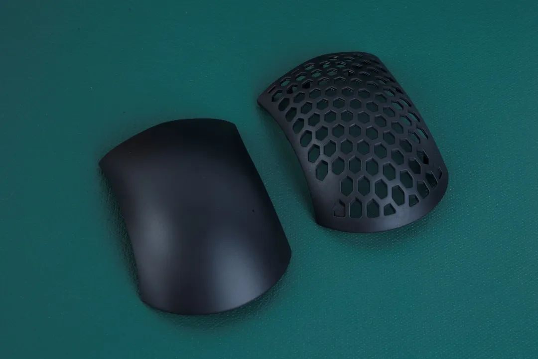 ▲黑爵AJ199双模游戏鼠标支持替换镂空材质的后盖模块