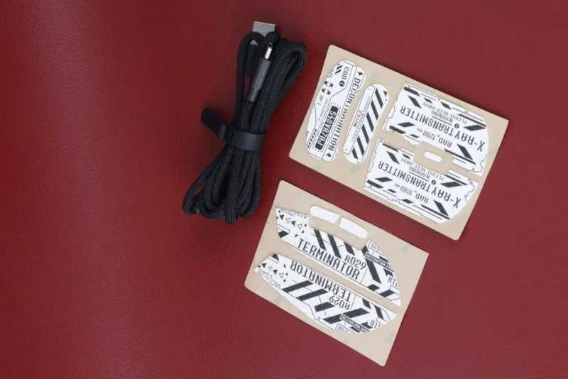 ▲其他配件方面,黑爵AJ199双模游戏鼠标提供了一条伞绳线以及适配的防滑贴。