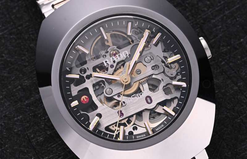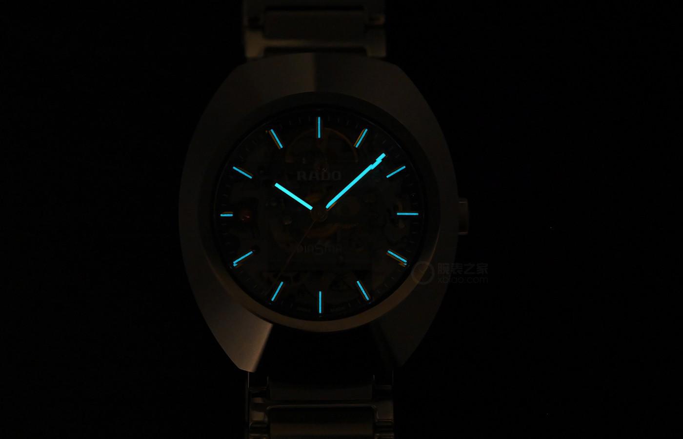 全新的DiaStar钻星腕表采用了一个镂空盘面设计,将机械运转的动感魅力与盘面相融合,让佩戴者可以在每一次读取时间的同时,感受到来自机械腕表的动态美感。我们可以看到,这款全新腕表的镂空面积非常大,这也展现了品牌对自己的一种自信。毕竟机芯露的越多,那么需要打磨处理的配件就越多,那么制表的时间和成本都会有所提高。这也是为什么我们在同级别腕表中,很少看到和这款全新雷达DiaStar钻星腕表一样,这么敢“露”的表款。