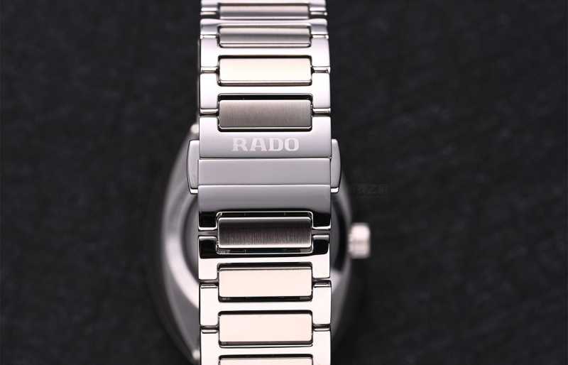 透过蓝宝石玻璃表镜或表背,我们可以看到腕表内部搭载的是Rado R808自动上链机械机芯。机芯自动陀采用直纹工艺打磨,不同角度去看,光影随之流动。上层夹板经过鱼鳞纹打磨,非常精致。除此之外,该机芯还拥有长达80小时的动力储备时长,搭载Nivachron™防磁游丝,并通过五个方位精准度测试,可以说这样的性能已经超过同级别腕表,达到越级水平。