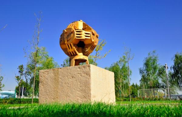 在郑州磨料磨具磨削研究所有限公司(以下简称郑州三磨所)的草坪上,一台外表金灿灿的球形设备被摆放在正中央,这是见证了我国金刚石产业发展的“功勋压机”——我国首台铰链式六面顶压机。