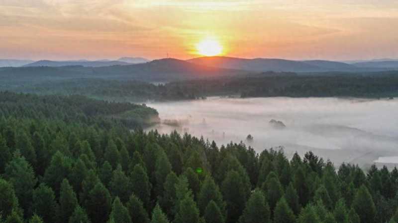 塞罕坝国家森林公园晨景(无人机照片)。新华社发(刘满仓 摄)