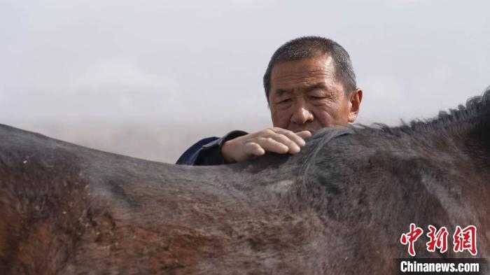 丁学生抚摸着自己养殖的马匹。(李蓉 摄)