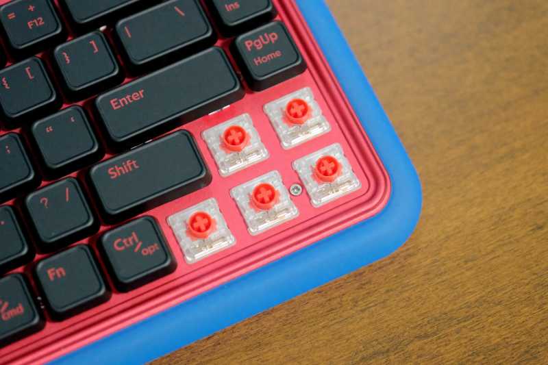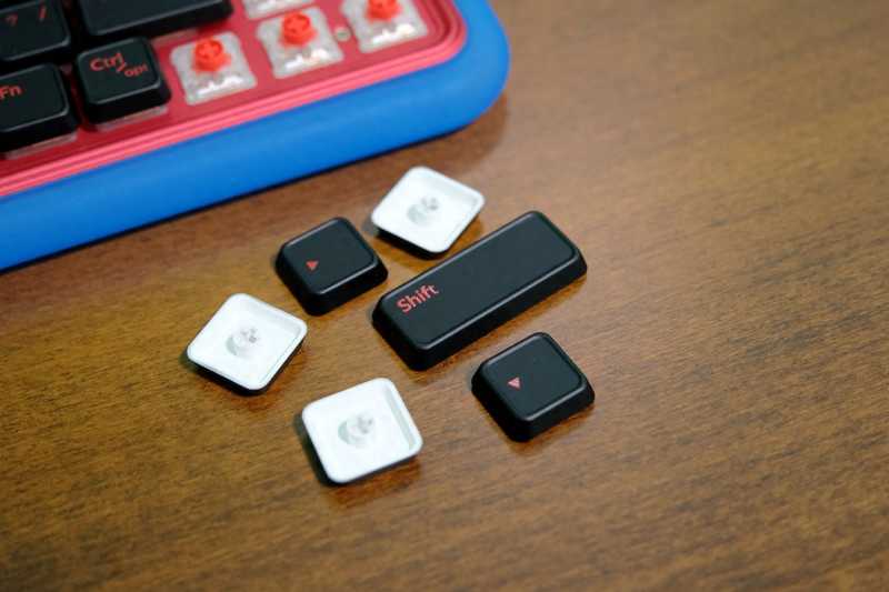 轴体方面是杜伽定制矮轴,去掉键帽后可以看到是红轴,属于线性轴体,非常适合快速码字时使用,大键位依然采用的是卫星轴的设计,杜伽的调校水准依然是给力的,键位手感轻盈,回弹紧致,没有松垮和空键程的情况出现,码字娱乐两相宜▼