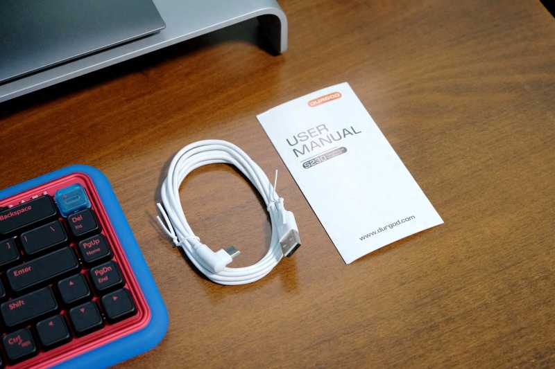 配件方面附送了USB-C充电线和纸质说明书,C口的弯头设计很贴心,给键盘充电时较为便捷▼