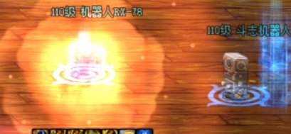 作为对比,这是该技能在并没有佩戴范围贴膜的情况下的爆炸范围(可以将旁边的斗志机器人作为参照物):
