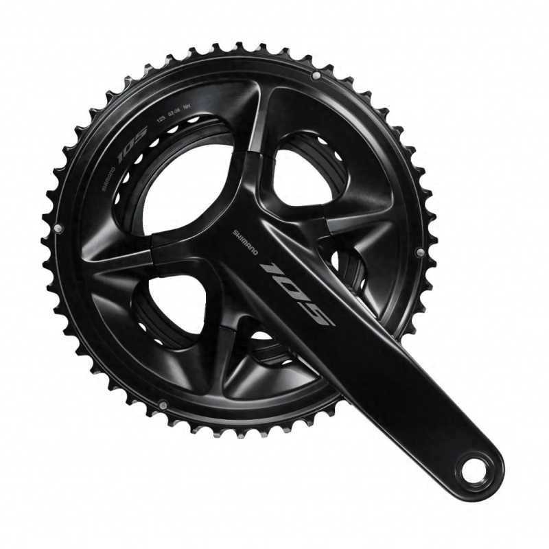 12速机械105的传动部分(牙盘、飞轮、链条)和电变105 Di2相同,包括全新外观的曲柄,12速的CS-R7100-12飞轮(11-34T),CS-HG710-12飞轮(11-36T)。刹车系统也一样,这意味着卡钳的刹车夹板间隙加宽10%,更易于调节,不容易蹭碟,而且提供了新的更简单的注油方式。公路碟刹日臻完善,因此新的12速105并没有圈刹。Shimano的策略很明显,竞赛级别套件保留圈刹,因为少数高水平的玩家还需要圈刹,对于其他用户来说,使用更易于操控更安全的碟刹就可以了。