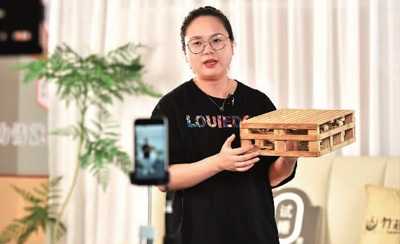 9月10日,在湖南省娄底市双峰高新区一竹制品生产企业,销售人员在直播介绍竹芯床垫小样。 乃继辉摄(新华社发)
