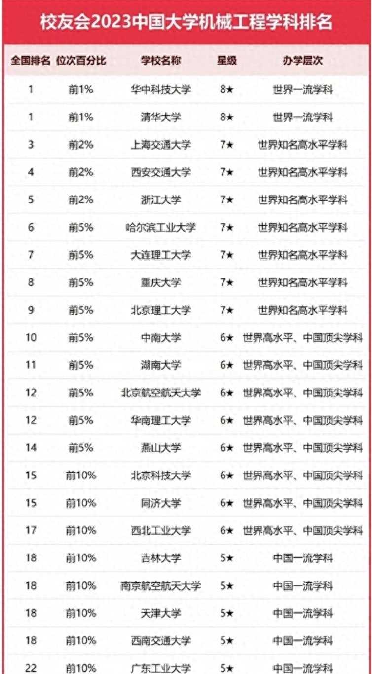 高校2023年机械工程实力125强:华中科技大学夺冠,中南大学第10