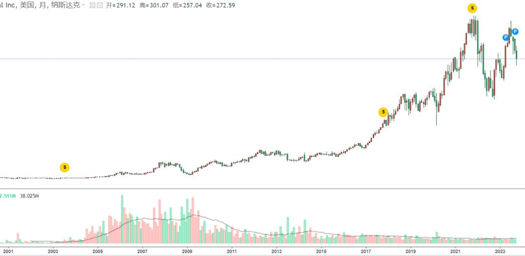 达芬奇手术机器人作为行业霸主,自面世以来已完成手术超过1000万台,几乎“垄断”整个市场。而一手缔造“达芬奇”的美股公司直觉外科,上市二十三年来,股价更是从最初的2美元(前复权),上涨最高至369.69美元,实现185倍的造富神话。