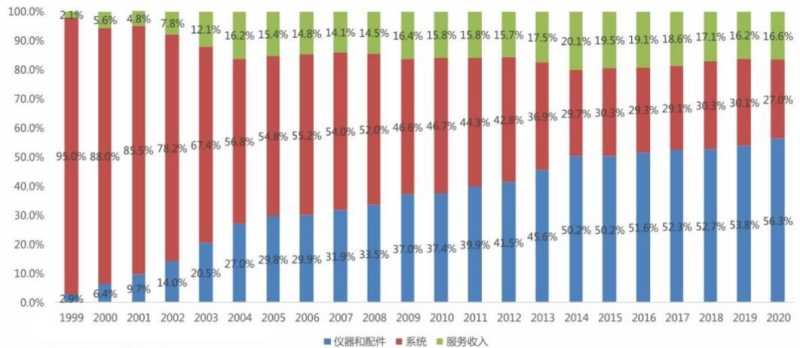 然而,虽然达芬奇机器人销量显著,但系统销售所贡献的营收占比却在不断降低,究其原因在于配件与服务营收的快速增长,而这才是达芬奇机器人真正的盈利杀手锏。