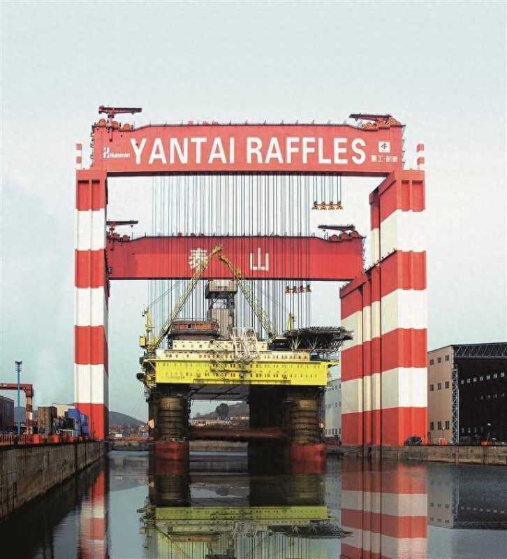 此次获得世界之最科技成果认定的2万吨多吊点桥式起重机,主要担负船坞作业范围内的平台起升、对接工作。设有12套卷扬机构、48个吊点,分别布置在两根主梁下方,能够实现2万吨以内海洋平台整体一次性平稳吊装。该设备改变了传统海洋平台坞内小分段制造工艺,单次吊装可节省约200万个工时,使建造周期缩短30%,能够极大地为客户降低制造成本。
