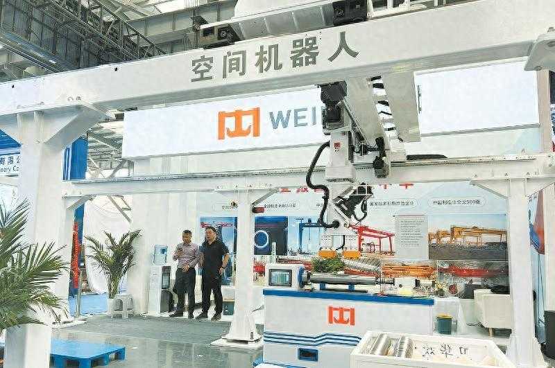 本届展会收获颇丰,320多家国内外企业竞相参展,签约55个项目,总成交额82.77亿元。家门口的盛会,长垣起重企业各展所长。卫华集团携带重型空间机器人、重型板材搬运机等多款智能化搬运产品参展(如图),装载数字孪生、AI控制算法、人工智能、虚拟传感等新技术的新产品,成为一大亮点。