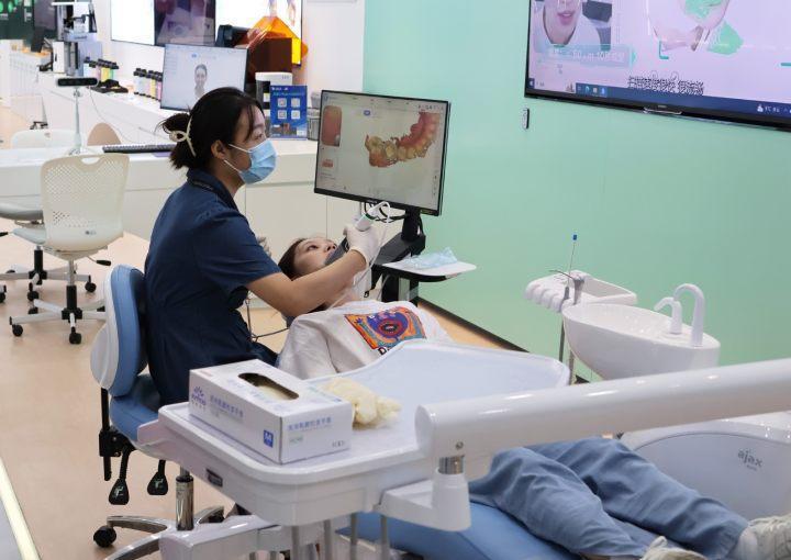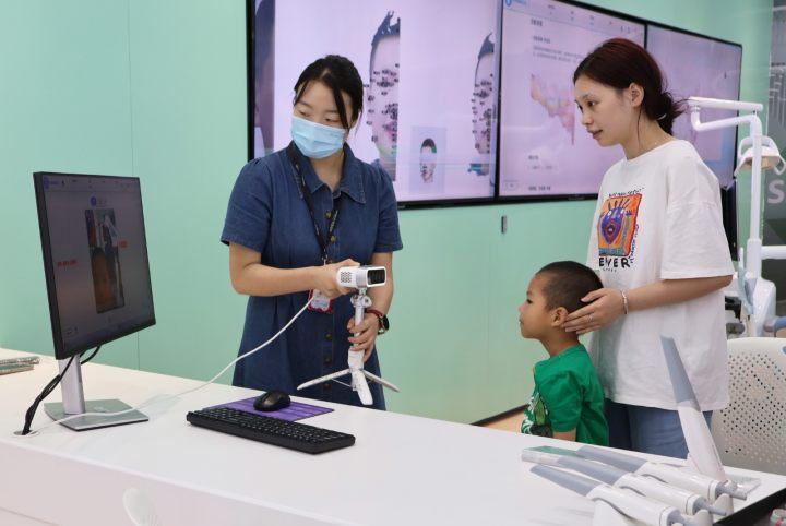 “请躺下,放轻松。”工作人员带着一个小朋友开始体验牙齿扫描。只见工作人员将设备放入小朋友的口腔,左扫一下,右探一下,短短一两分钟,小朋友的口腔模型就实时在电脑上生成。“哇,看!这是我的牙齿!”小朋友兴奋地指着屏幕上的模型说道,她的妈妈也在一旁感叹:“这比我们在医院做检查快了好多!”“而且做的时候我的嘴巴都没什么感觉。”小朋友笑着补充道。