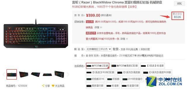 雷蛇再次以第八名的身份出现的排行之中,而此次进榜的正是能够代表“灯厂”这个称号的黑寡妇蜘蛛幻彩版。这款键盘是当初为了灭一灭海盗船高调使用Cherry RGB轴体的K70 RGB的“嚣张”气焰而推出的首款RGB灯效机械键盘。黑寡妇蜘蛛幻彩版评价为8300+,售价为899元。