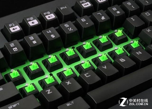 机械轴采用了雷蛇自主研发的绿轴,触发压力为50g,同时拥有高达6000万次的使用寿命。其手感类似于Cherry青轴,同样拥有强烈的段落感与清脆的“咔哒”声,强烈的机械确认感让使用过程更加享受,也有更多的人沉迷于此。