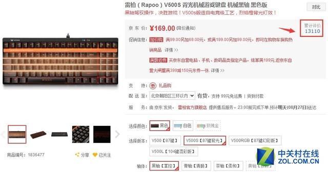从目前国内消费消费习性上来看,绝大部分人购物都是偏向于性价比这个东西的。抛开高价格前三名来看,其他键盘的价格战打得还是非常激烈的,甚至出现同价相争的情况。而最直接的体现就是两个售价均为169元的V500S和机械师87,同为80%布局的背光键盘,拥有悬浮面板和多色背光的机械师87在评论数上就超越V500S约1.1万。雷蛇在列的两款产品均为榜中最高,说明一部分消费者会为品牌附加值和好的产品体验而消费。