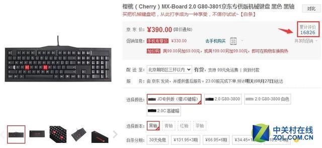 樱桃(cherry)可以说是机械键盘的始创者,作为在德国诞生、拥有数十年历史的键盘厂商,在机械键盘上发挥到极致,不同颜色的轴心代表着不同的手感,已经成为业内公认的辨别方式,即使是一些自主研发轴体的厂商依然在沿用这个方法。G80-3801京东专供版获得了16000+的评价,售价为390元。