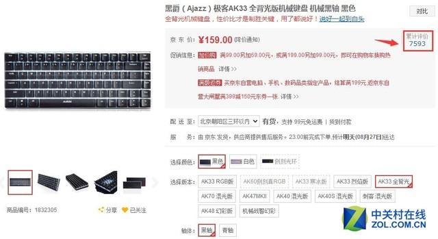 黑爵与2009年创立于中国深圳,是一家年轻、有活力的新兴企业。黑爵的极客AK33全背光黑轴黑色夺得了第九的名次,对于一家初入外设行业的企业来说,能够在业内占有一席之地也是非常值得骄傲的。极客AK33的评价为7500+,售价为159元。