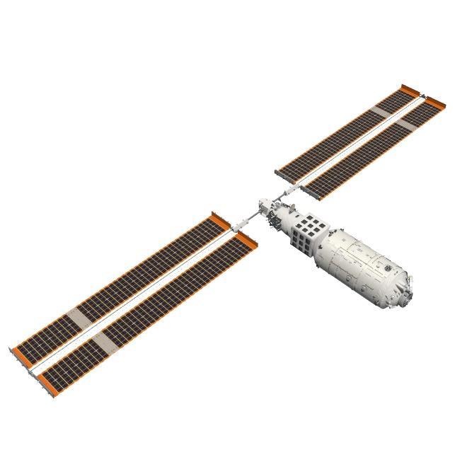 资源舱配置有大型柔性太阳翼和双自由度对日定向装置,它可根据空间站在轨运动姿态和太阳的角度,让太阳翼绕着实验舱轴和太阳电池翼轴进行转动。