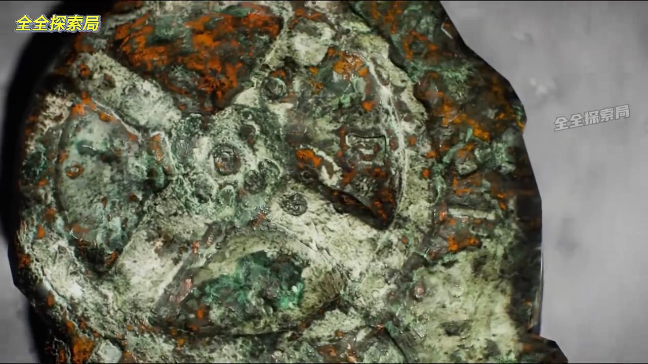 2. 这是有史以来发现的最大一批希腊文物,他们将所有物品带回雅典,博物馆工作人员正在拼凑这些文物,而此时那块腐蚀的青铜块仍无人注意。接下来几个月它逐渐干燥并裂开,破碎岩石揭示出非常奇怪的东西,一个大型轮子上刻有字母和多个小齿轮,像一台古代机器,是拥有超千年先进机制的复杂装置。