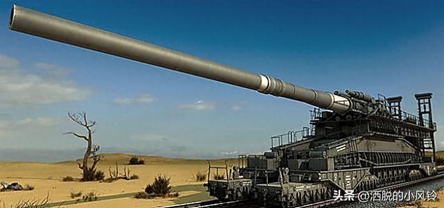 1935年,希特勒下令研制超级巨炮,梦想击溃坚固堡垒。 克虏伯兵工厂耗时7年,打造出800mm口径巨炮,重1350吨,射程40km。