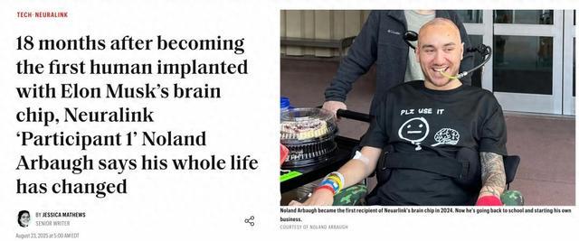 芯片插入大脑18个月后,全球首位Neuralink受试者如今怎样了?最新访谈中,Noland Arbaugh亲述像重生了一样。如今,他不仅能用思想玩游戏、控制家电,还在重返大学、创业和公开演讲中找回了生活的意义。