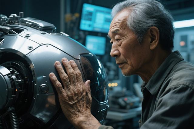 “哦。”耿朝辉应了一声,围着那台体型巨大的机器人走了一圈。他没有看屏幕上密密麻麻的代码和数据,而是伸出粗糙的手,在机器人冰冷的外壳上,一寸一寸地抚摸着。