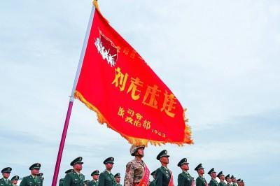 82年后,北京天安门广场,纪念中国人民抗日战争暨世界反法西斯战争胜利80周年阅兵式上,“刘老庄连”的英雄传人高擎战旗、列阵方队,光荣接受党和人民的检阅——新时代,“刘老庄连”官兵赓续红色血脉,在“生命不息、战斗不止”连魂精神指引下当先锋立新功,出色完成跨区演训、国际维和、抗洪抢险等重大任务,英雄的旗帜历经风雨更鲜红。
