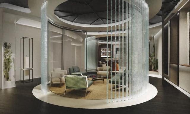 因此,悉尼精品店的设计便不再是一个标准化模板的复制。它占地270平方米,空间开阔通透,摒弃了传统墙体,转而采用品牌标志性的“碎玻璃”鳍片元素,巧妙地划分出不同功能区,既保证了空间的流动性,又营造了私密的氛围。