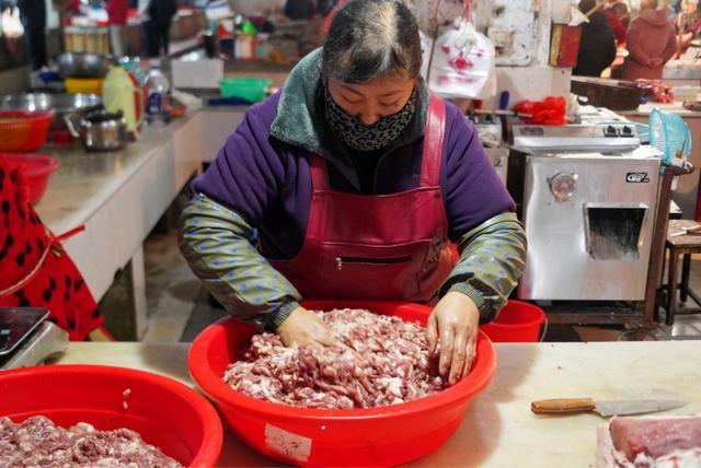 12月3日清晨六点多,天还未全亮,记者来到巢湖丽水湾菜市场里时,看到这里人气十足。在肉铺老板孙克胜的摊位前,市民们一边排队,一边打量着案板上红白相间的猪肉,盘算着哪块更适合灌制香肠。