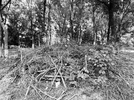 奥森的工作人员告诉记者,这处“本杰士堆”原本没有那么大,来来往往的游客总是热心地为它添枝加叶。红外监测显示,“本杰士堆”周边经常有兔子、刺猬的身影,为奥森公园增添了生物多样性。