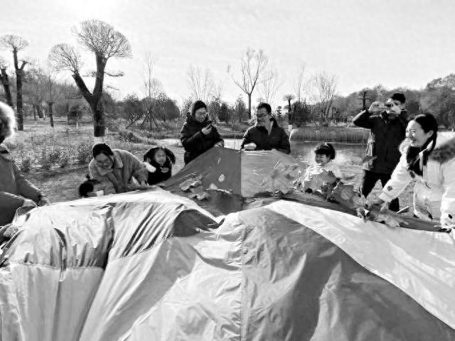 这个驿站建在城乡接合部的苗圃中,一株株姿态各异的榆树,让孩子们大饱眼福。一个半小时的课程分为三个部分:破冰、树叶鱼和点彩画,参与活动的总共15组家庭。孩子们在苗圃里尽情撒欢,将捡到的落叶都放在一块巨大的布料上,每人抓住布料的一角使劲抖动。叶子在疯狂跳舞,孩子们一个个开怀大笑,不知不觉间拉近了距离。