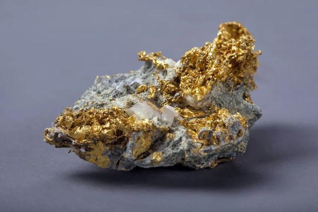 产自四川的自然金,主要产于高、中温热液成因的含金石脉中,或产于火山岩系与火山热液作用有关的矿床中。图片自湖南省地质博物馆