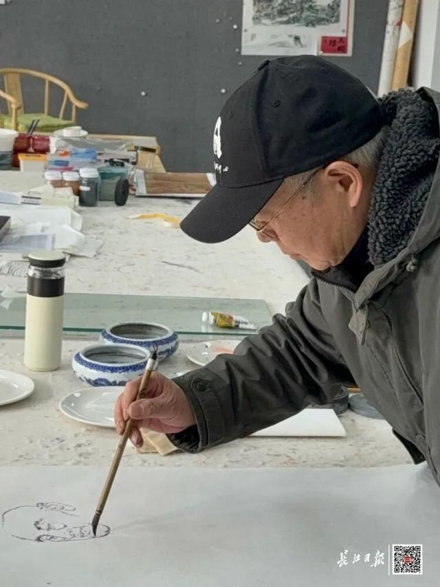 湖北省美术家协会主席李乃蔚在玄纤纸上作画。记者陈晓彤 摄