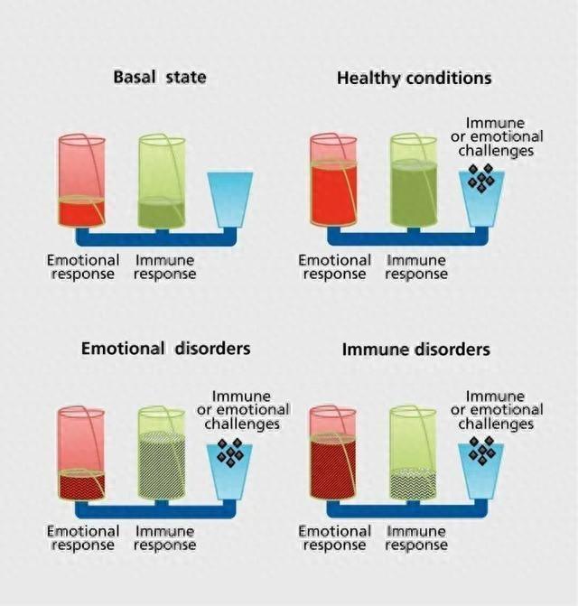 当一个人长期处在焦虑、愤怒或沮丧中时,大脑负责调节情绪的区域会影响免疫细胞的表达,使促炎基因上调、抗感染基因下调。这意味着免疫系统在情绪混乱时更容易出现“反应过度”或“反应不足”的情况。
