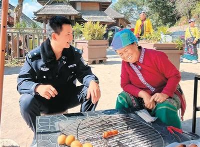 我们还帮助村民解决旅游发展中的难题。景迈村的岩板想开民宿却不懂规范,我就跟他一起看布局规划,了解消防要求;翁基古寨的玉应大姐不会操作电脑,我便安排辅警上门帮忙填报材料。一年来,惠民派出所民警开展上门服务30余次,帮助136家经营者顺利办证,还推动成立景迈山民宿协会,实现抱团发展。