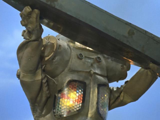 值得注意的是,金古桥的设计暗合了60年代末的科技焦虑。佩丹星(PEDAN)的名字可能源于“Pedion”(希腊语“平原”),暗示着其文明的特质;而金古桥全身毫无接缝的银色装甲、眼部与胸口的LED式发光体,则令人联想到同期阿波罗计划的登月舱与早期计算机设备。在美苏太空竞赛白热化的时代背景下,这个来自外星的超级机器人,恰如人类对自身科技可能被用于毁灭的深层恐惧的投射。