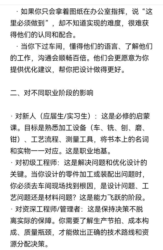 机械行业,车间是真理的最终检验场。下车间不是让你永久成为操作工,而是为了让你未来能成为一名接地气、懂制造、能落地的优秀设计者或管理者。
