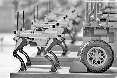 2025年九三阅兵陆上无人作战方队中的“机器狼”。新华社发