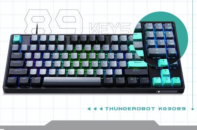 最后要介绍的是专为预算极度敏感用户准备的雷神KG3089北冥机械键盘,它给出了百元价位段“游戏机械键盘怎么选”的诚意答案,虽然价格甚至不到一张百元大钞,但它依然提供了PBT双色键帽和雷神定制的TR茶轴,那种万金油般的微段落手感无论是打字还是游戏都非常舒服,89键的巧妙布局在保留了数字小键盘的同时压缩了尺寸,既实用又便携,全键无冲的设计保证了游戏操作的准确性。