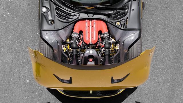 两台Twin-Scroll双涡管涡轮增压器被安置在所谓的“热 V”结构中,即位于两列气缸之间。相较以往版本,涡轮本体更加轻量,响应更快,并可提供更高的增压压力——据估计超过1.4巴。最终,这台V12发动机在6500转/分时可输出835马力,并在2500转/分即可释放出高达1000牛·米的惊人扭矩。
